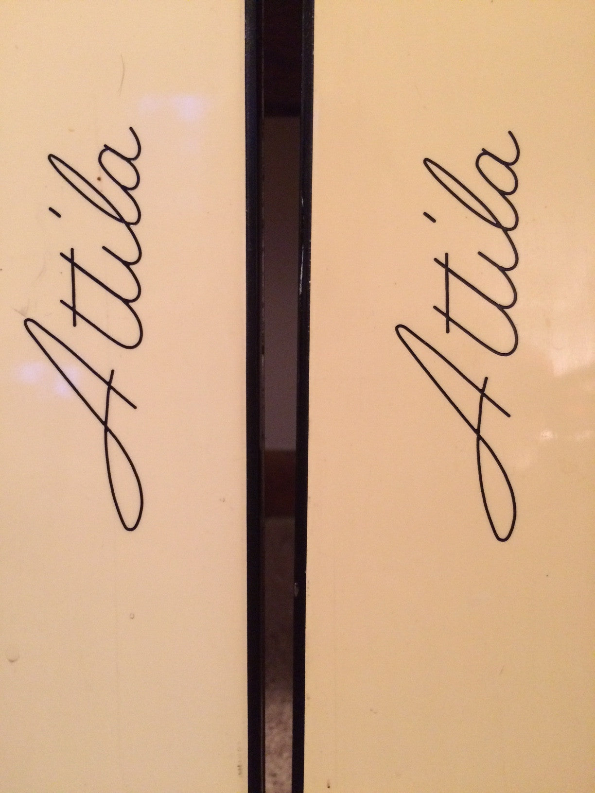 The NISHIZAWA Attila HAWK snow ski is a wood core construction, most likely a torsion box, similar to the famous Olympic champion DYNAMIC VR17, K2 Four, K2 710 FO and K2 KVC snow skis. The ski has a laminate epoxy adhesive finish, the highly desired Japanese 'Poly-Tex' base material, add screw in edges and you have a fabulous piece of art deco artwork.